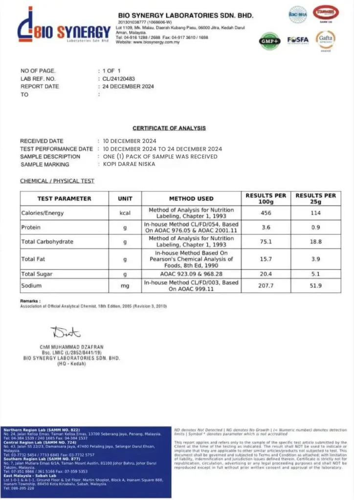 Ya, Kopi Darae disahkan selamat dan telah lulus KKM (MeSTI). Produk ini juga dihasilkan di kilang bertaraf GMP dengan pengiktirafan keselamatan makanan.