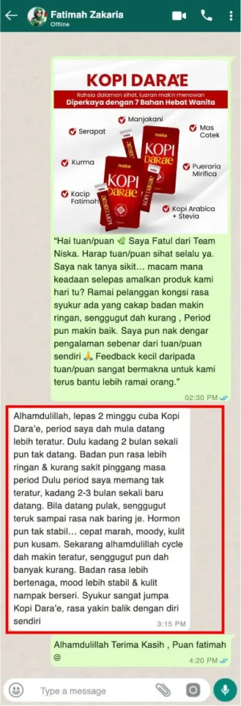 ⭐ 92% Pengguna Ulang Order Sebab Dalaman Mereka Rasa Lebih Sihat & Yakin Lepas Amal Kopi Darae. Anda Bila Lagi?